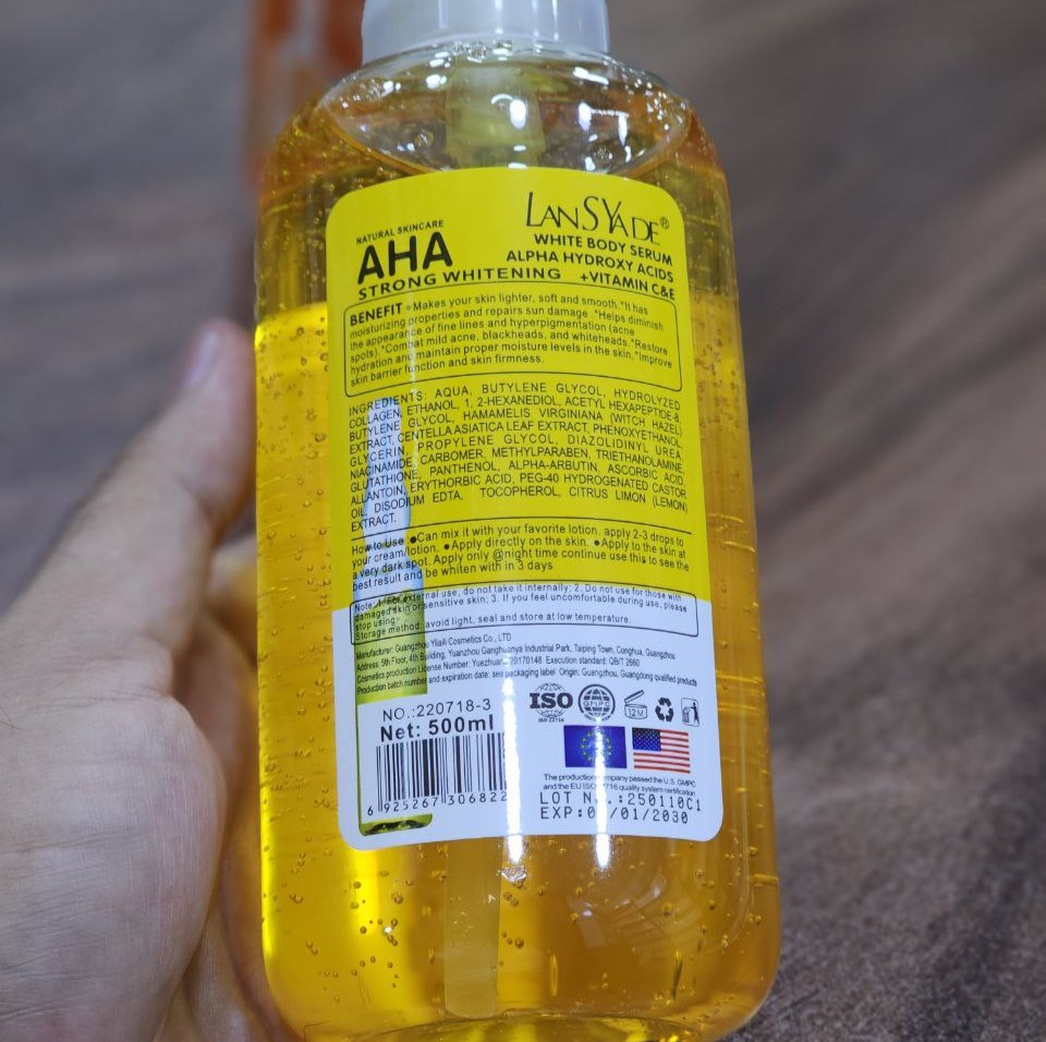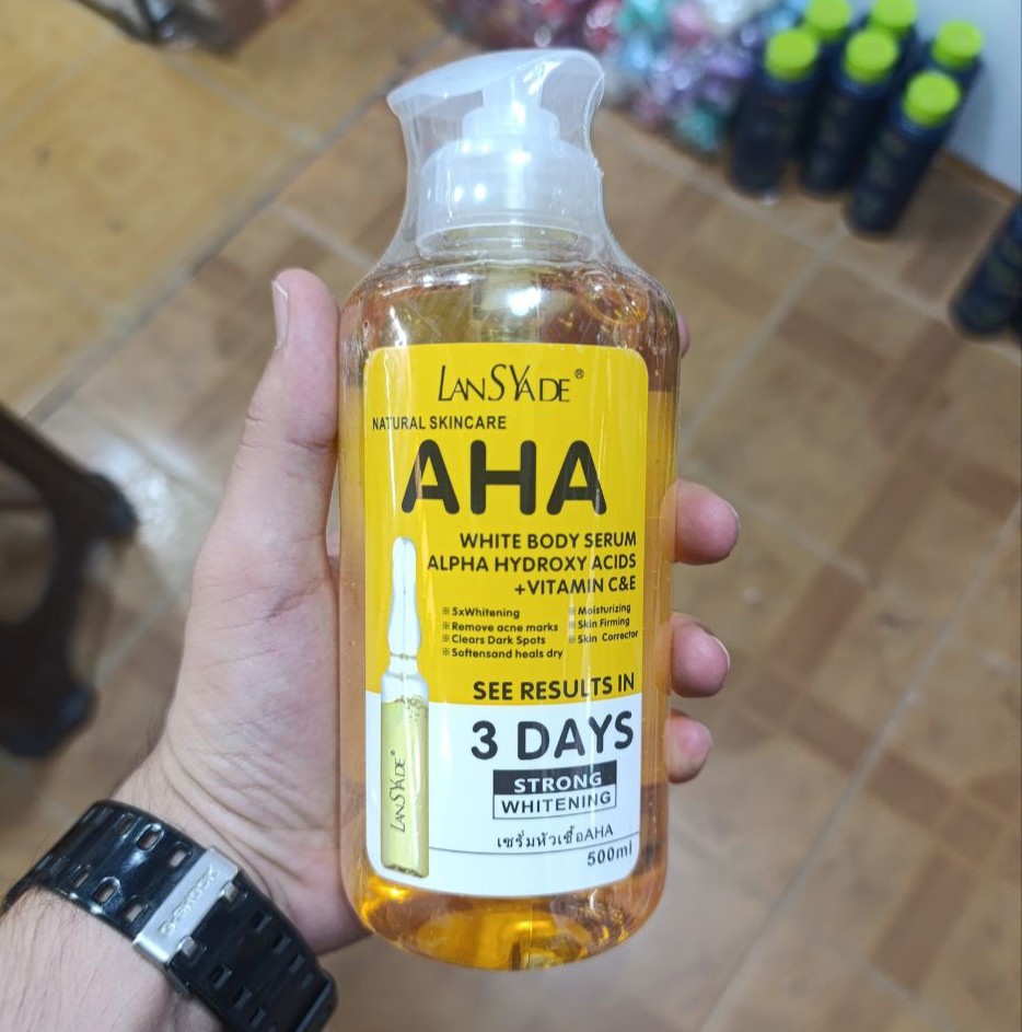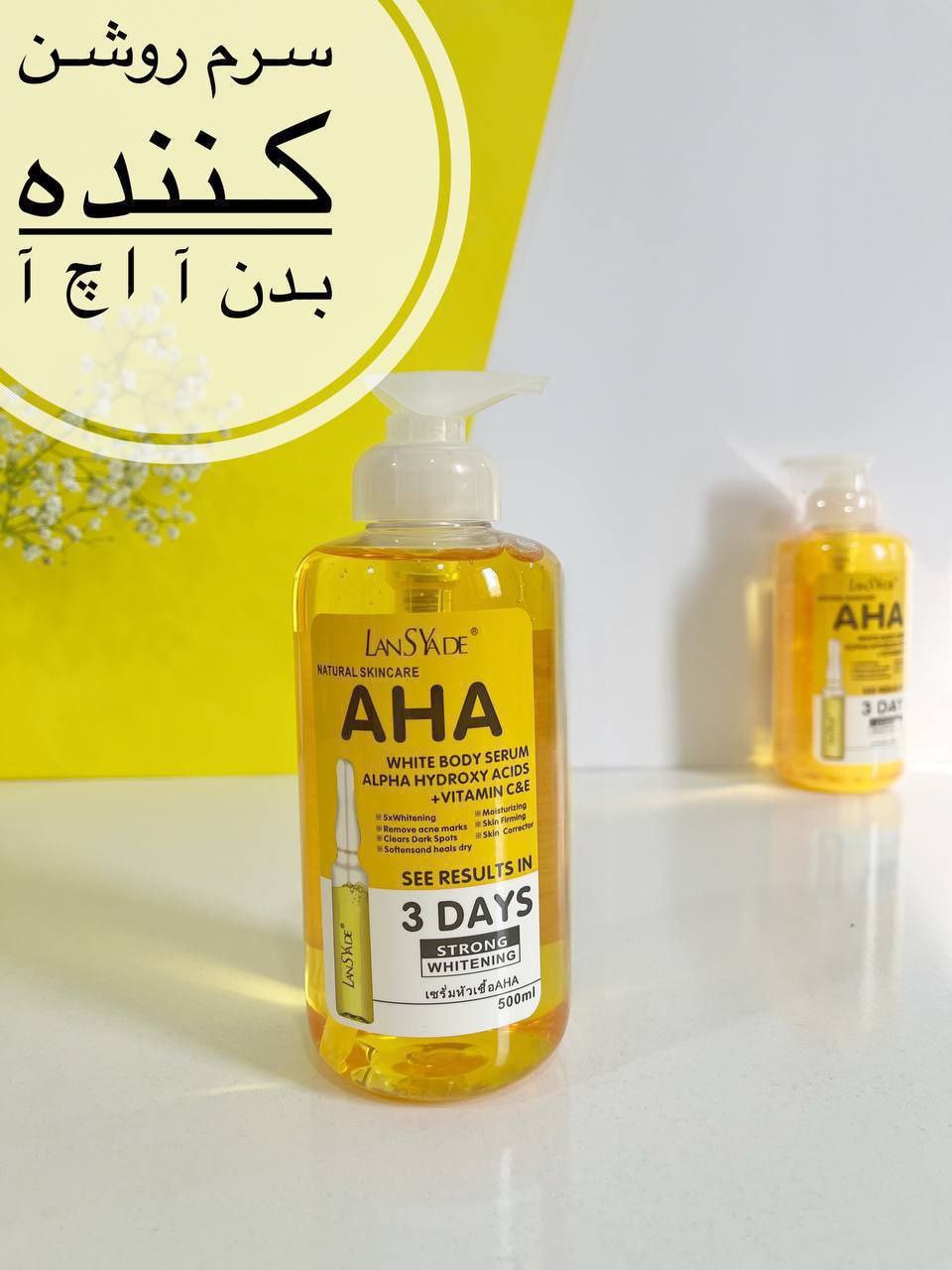 سرم روشن کننده بدن AHA با ترکیبات موثری همچون آلفا هیدروکسی اسید (AHA)، ویتامین C و ویتامین E طراحی شده است که به لایهبرداری پوست، روشنکنندگی و کاهش تیرگی موضعی کمک میکند. سرم روشن کننده AHA علاوه بر حذف سلولهای مرده و جای آکنه، باعث رفع خشکی و افزایش لطافت پوست میشود. استفاده از این محصول بهویژه برای رفع تیرگی در نواحی حساس بدن مانند کشاله ران، زانو و آرنج توصیه میشود.