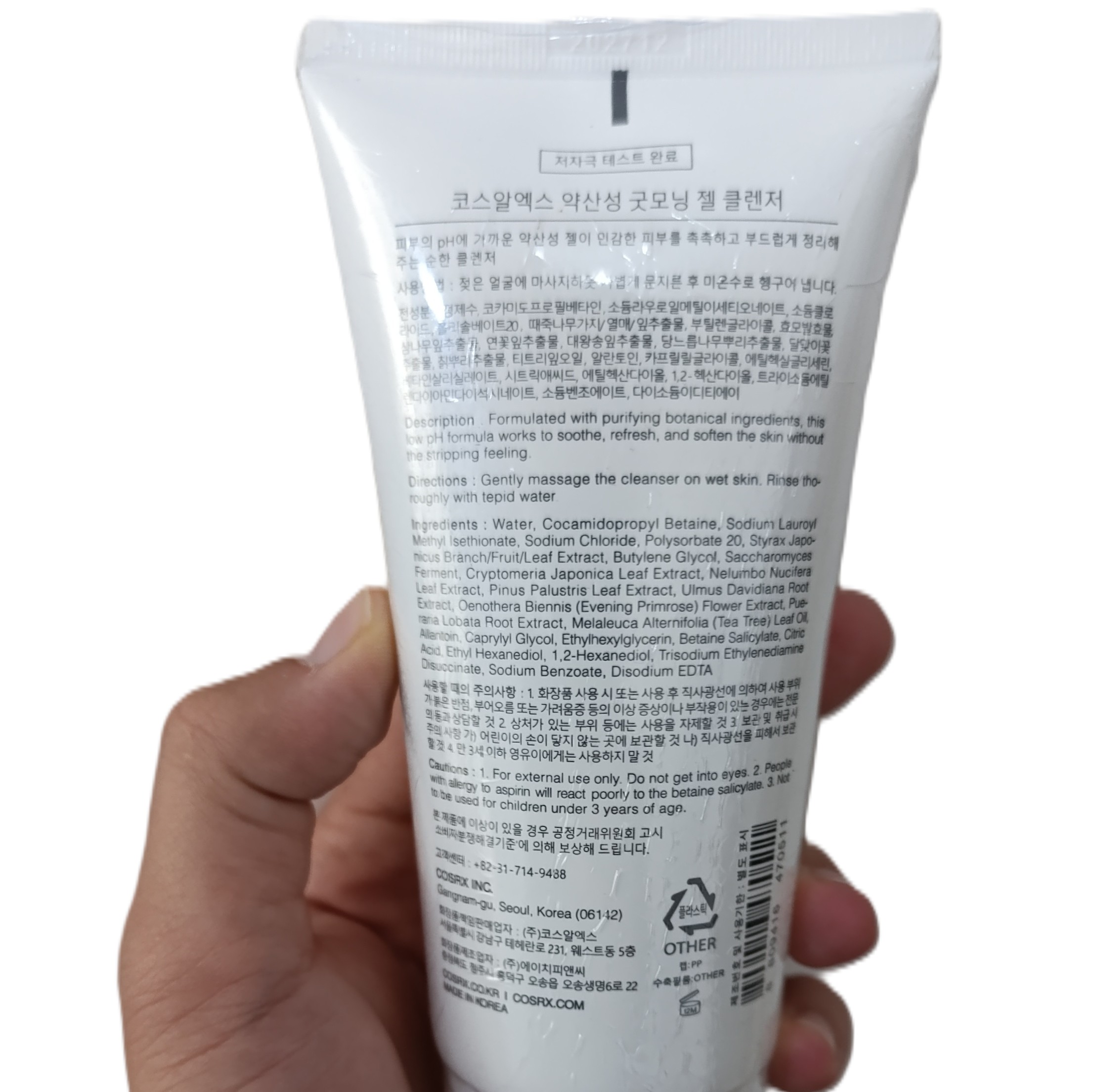 این محصول با ترکیبات موثری مانند بتاهیدروکسی اسید طبیعی (BHA) و روغن درخت چای فرموله شده و تمامی آلودگی ها و ناخالصی ها و سلول های مرده را به آرامی از بین می برد. در عین حال سطح pH اسیدی ملایمی از 5.0 تا 6.0 دارد و بدون آسیب رساندن یا خشک شدن پوست، آن را تمیز می کند. ژل شستشوی صورت با pH پایین گود مورنینگ کوزارکس از سد پوستی محافظت می نماید. این شوینده پوست را آبرسانی کرده و به بازیابی تعادل pH آن کمک می کند.